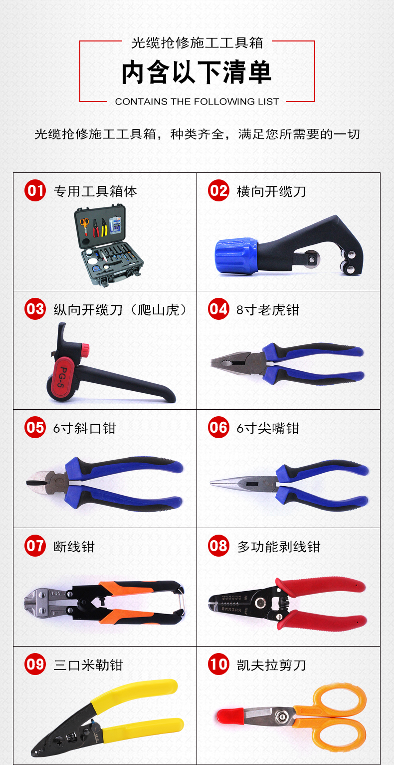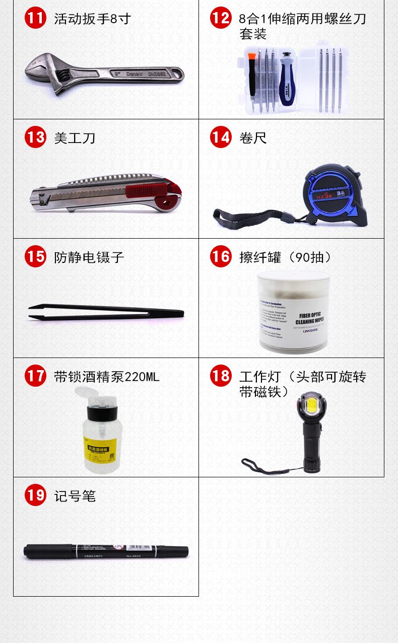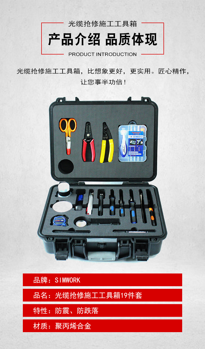 光缆抢修施工工具箱19件套,匠心精作,事半功倍,防震,防跌落