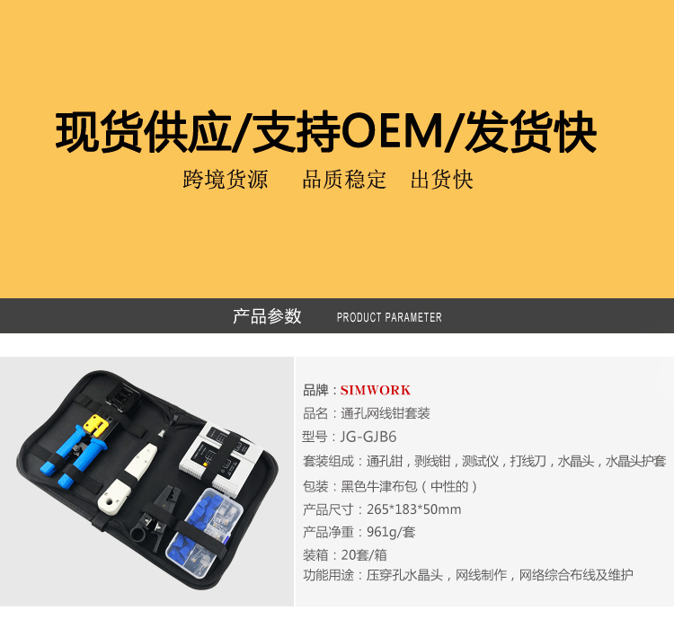 简工智造(SIMWORK)网线钳剪断剥线多功能带测试4P/6P/8P三用水晶头压接钳JG-CS022