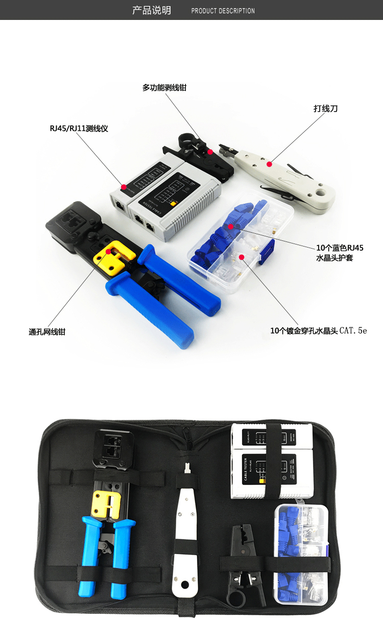 网络多功能工具包 综合布线维修 通孔网线钳/测试仪 JG-GJB6