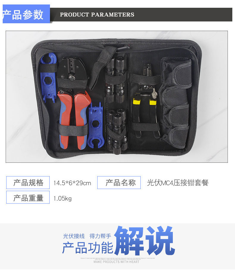 光伏mc4压线钳套装六 5件套