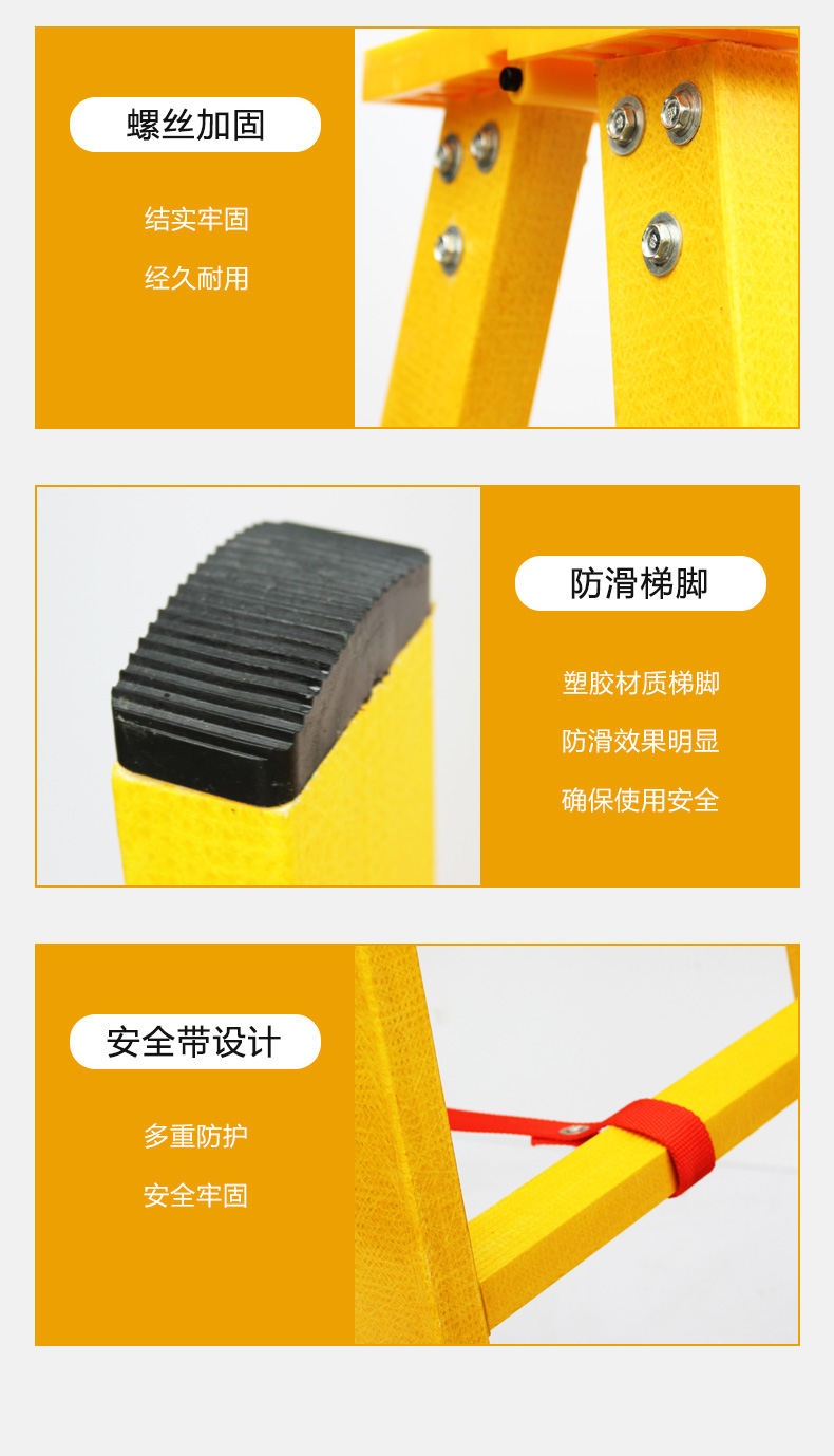 玻璃钢材质,便捷灵活 绝缘材质 防滑踏板,安全带设计