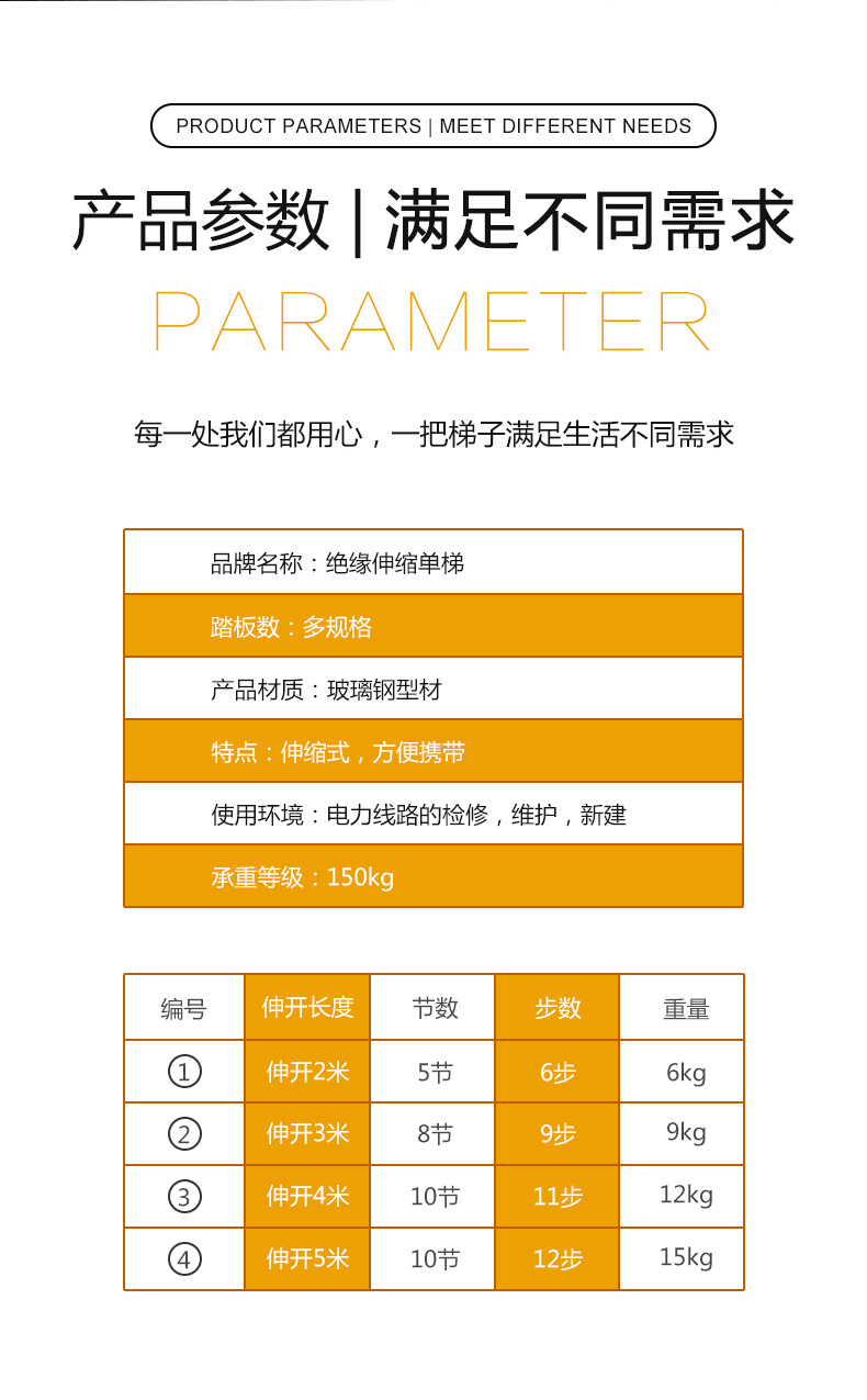 绝缘材质,伸缩开关 防滑横撑 3米 4米 5米