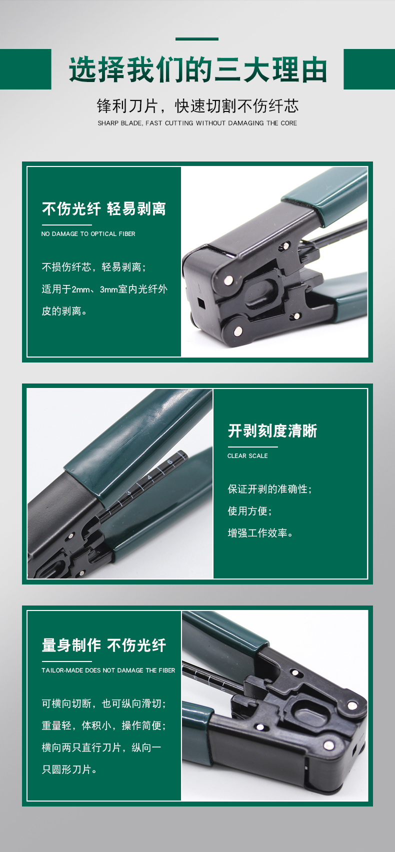 多功能一体 带长度定位 不伤光纤 轻易剥离 开剥刻度清晰