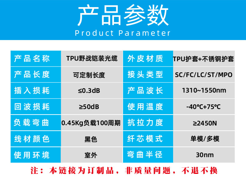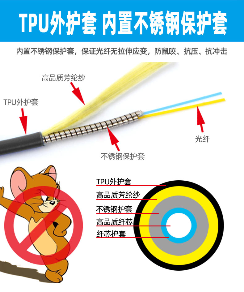稳定性好 抗拉性强 TPU外护套 不锈钢保护套 FC SC LC ST等接头