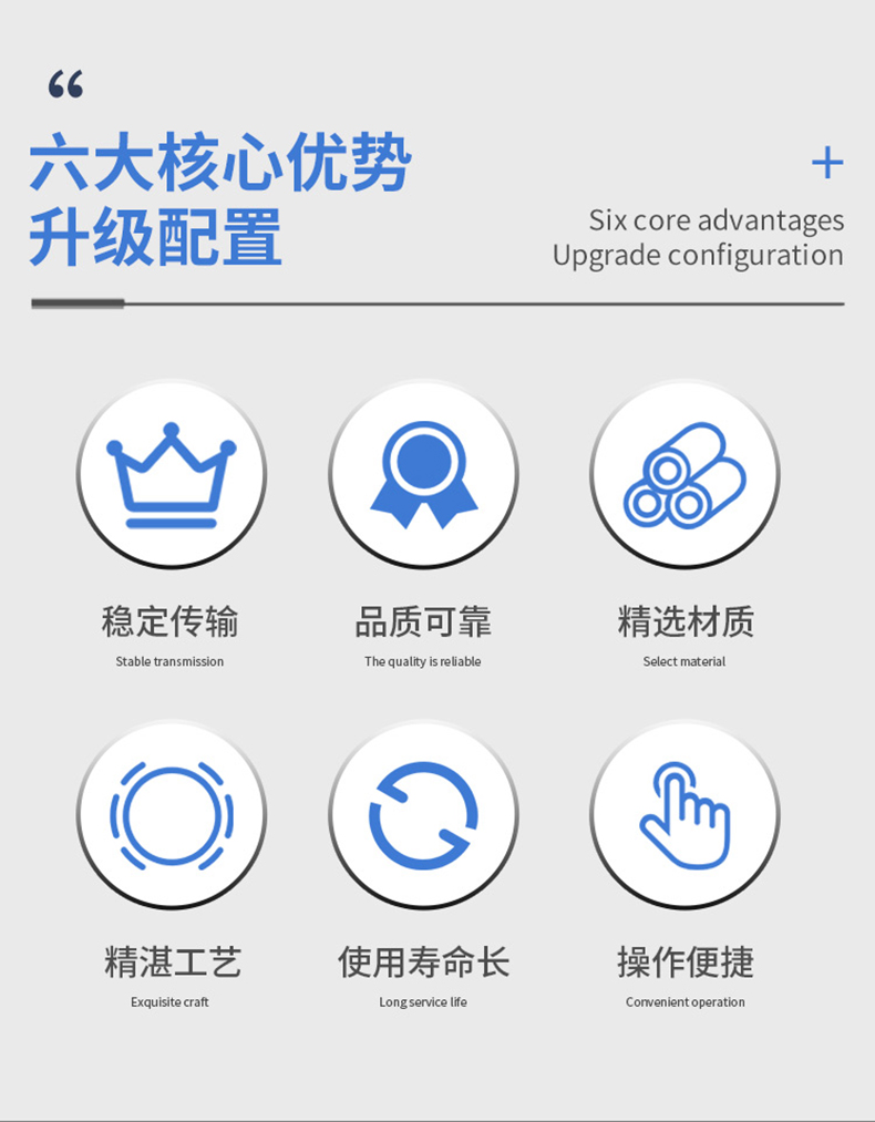 采用镀金纯铜线芯,稳定可靠,传输距离远;无铆钉安装,拆卸方便,操作简单,使用寿命长;电阻低,传输快,无损传输;