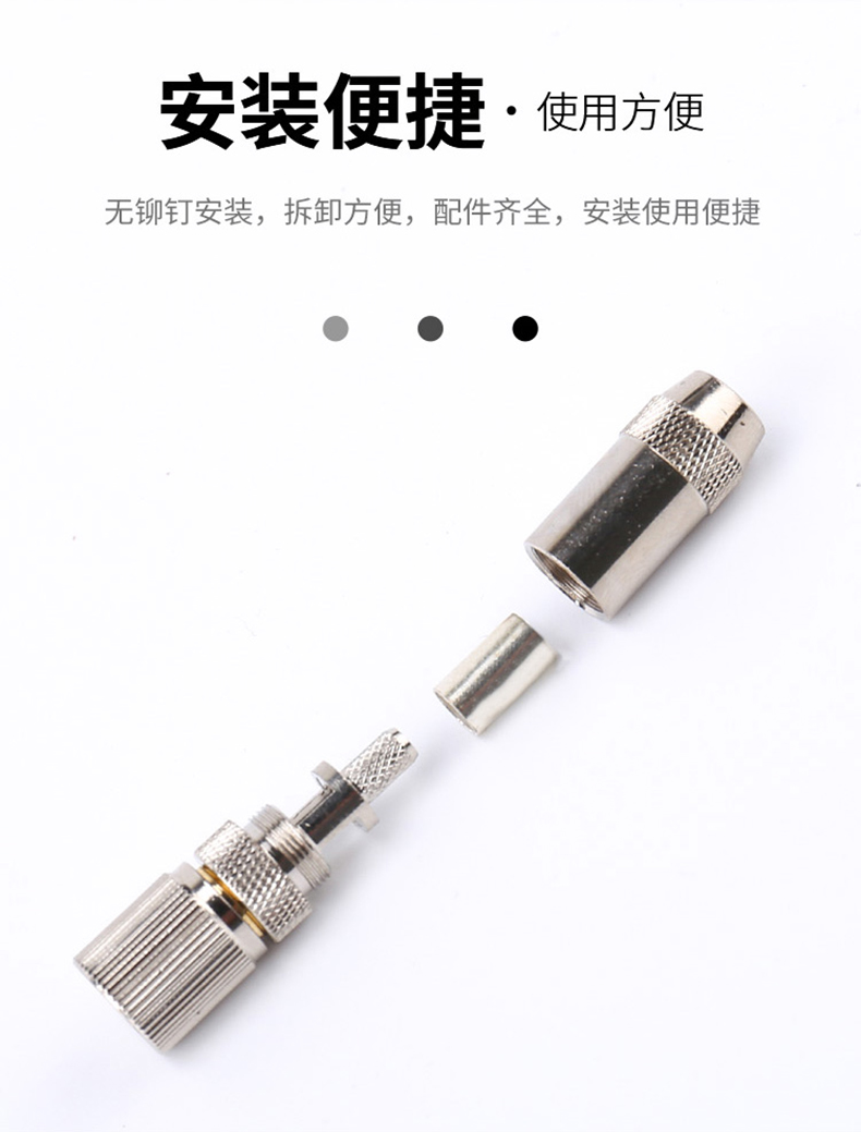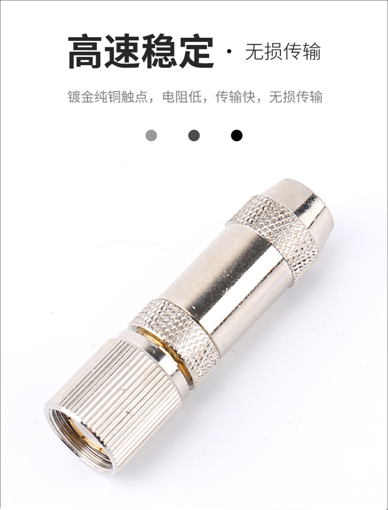L9型2M同轴插头、连接器具有螺纹锁定机构,连接尺寸为M9×0.5,特性阻抗为75Ω。该产品供通信设备和无线电仪器的射频回路中连接射频同轴电缆用。并能与符合IEC169-13规定的产品相互换。