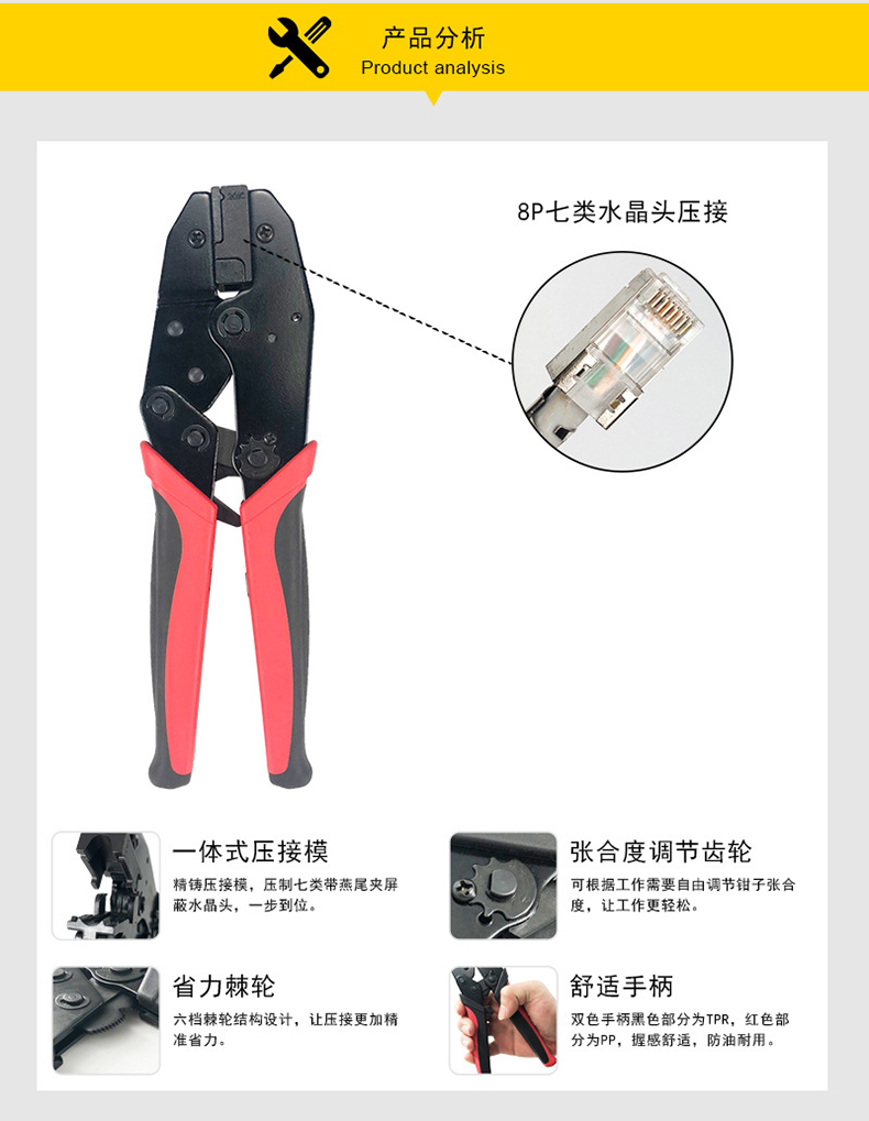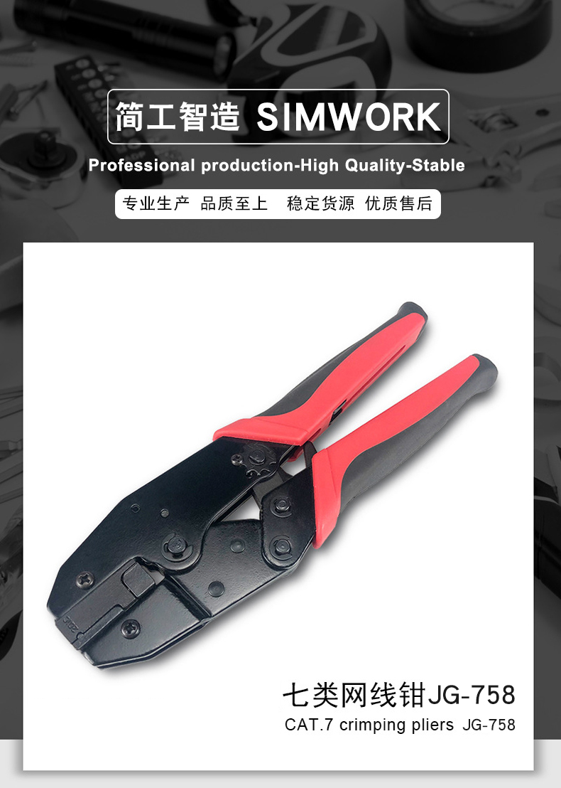 简工智造(SIMWORK)网线钳剪断剥线多功能带测试4P/6P/8P三用水晶头压接钳JG-CS022
