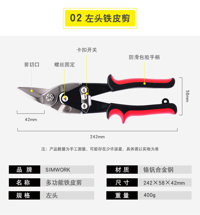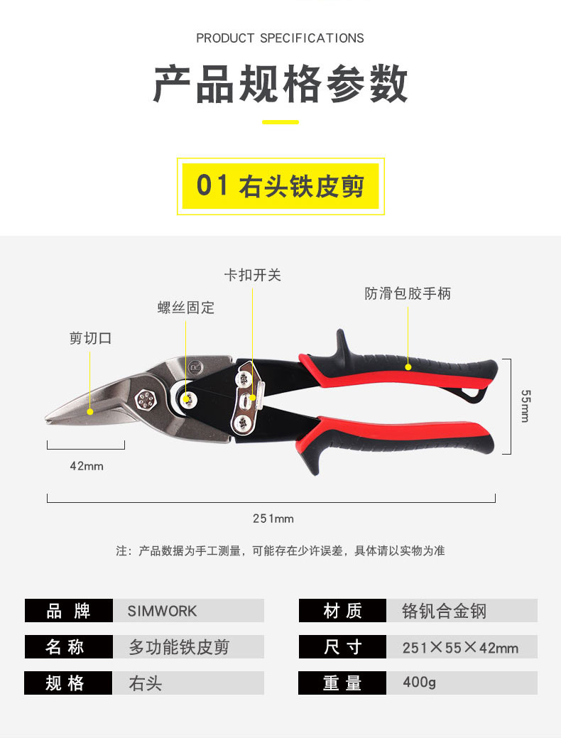 简工智造(SIMWORK)多功能齿轮断线钳断线钳 线缆剪刀断线钳手动齿轮式电缆剪刀 SR-533
